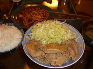 しょうが焼き、キャベツの千切り、イカとイカワタの炒め物(これ美味しかったぁ~♪)