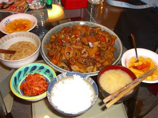 朝・昼飯一緒の今日の昼食は残り物とコーヒーゼリーです。